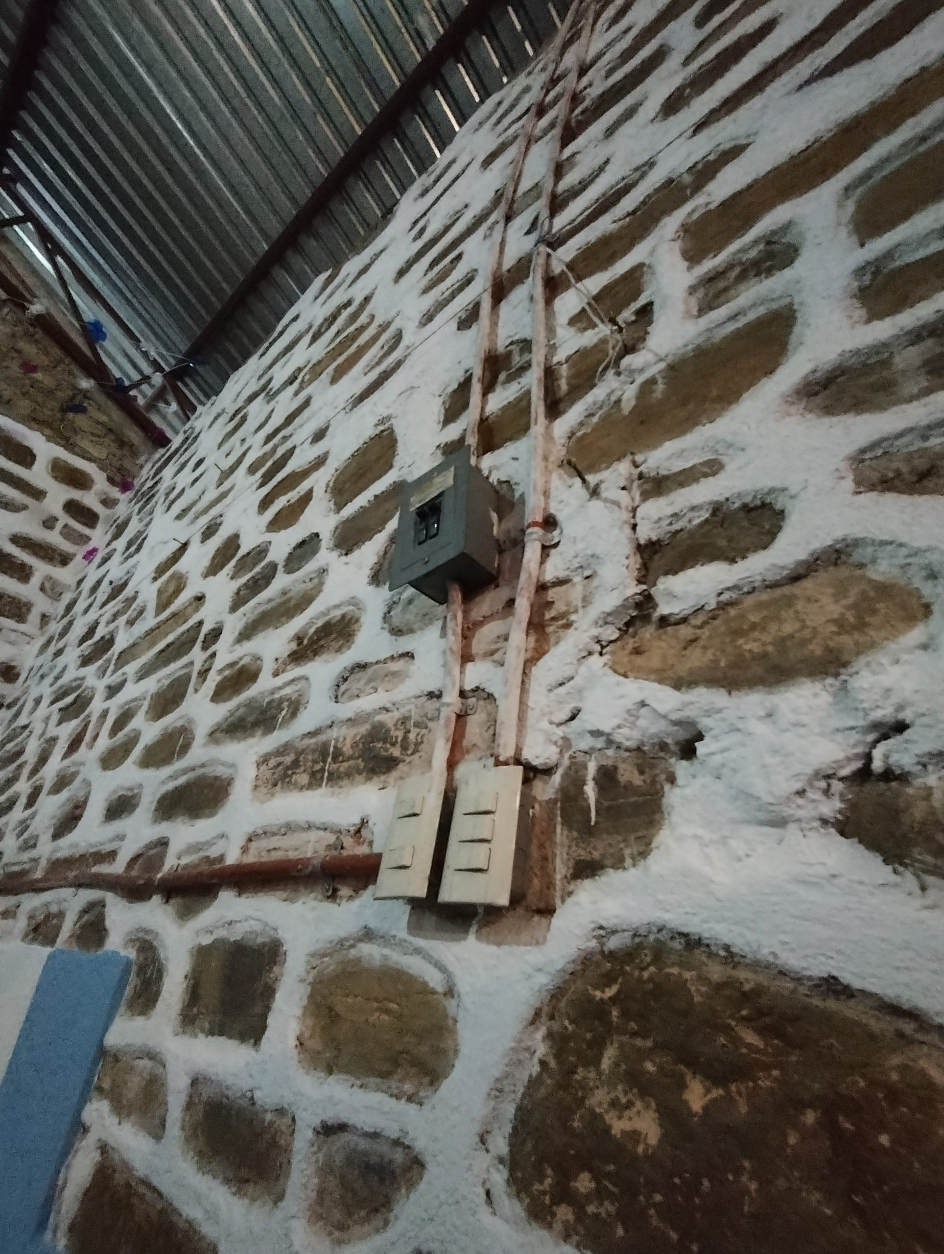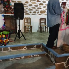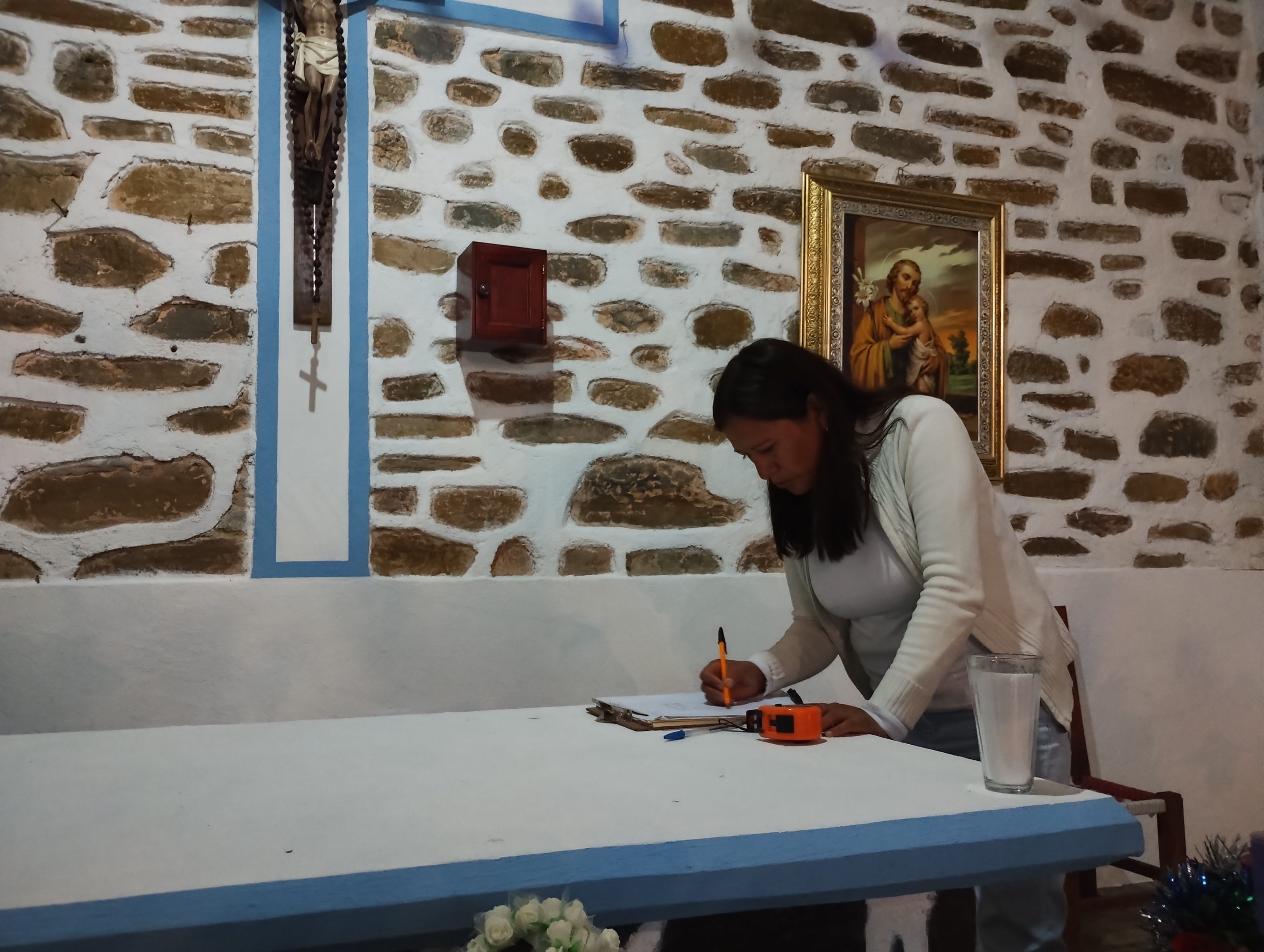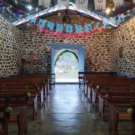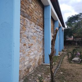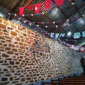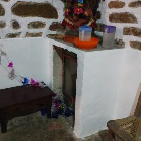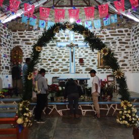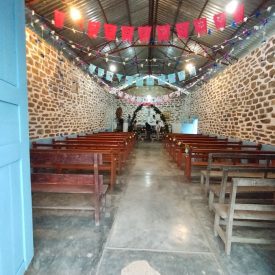 Información Oral : Es una capilla existente, en el patio exterior se encuentra el campo santo (panteón), la comunidad a tratado de mantener la originalidad, dando mantenimiento lo mas posible a su estilo, los muros son de piedra aparente, para evitar los desprendimientos de piedra han optado por hacerle las juntas de cemento, cal, arena, dejandolas visibles, anteriormente su techado era de teja sobre vigas de madera, debido a la filtracion de agua que existia y al deterioro de las vigas de madera, en el año 2015 la comunidad se organizo y decidieron construir unas columnas de concreto adosadas en la parte exterior del templo y sobre ellas descansa unas armaduras de perfil de acero formando un bastidor para recibir la lamina galvanizada, con esto han evitado que el agua pluvial dañe el interior del templo y su bienes muebles.